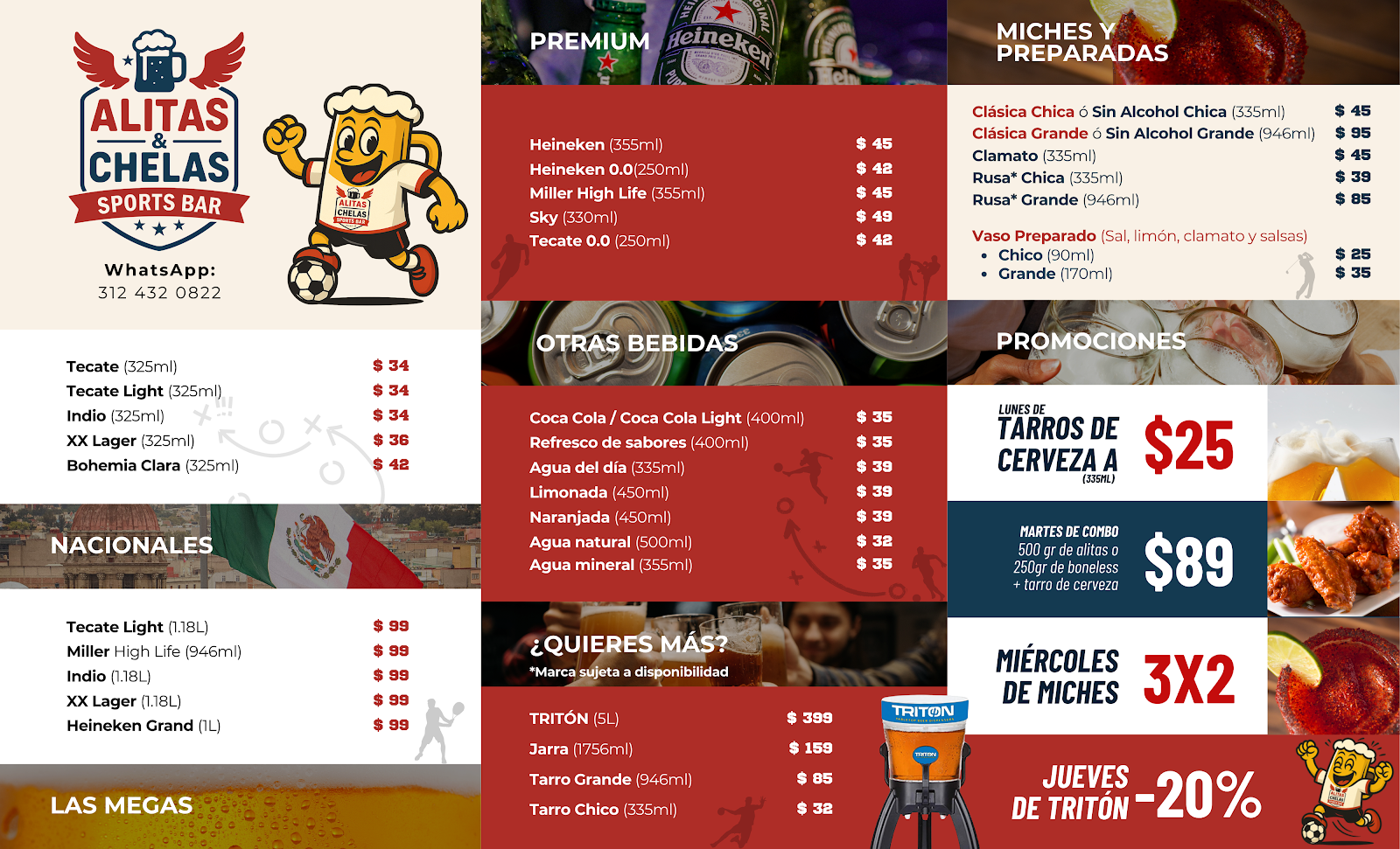 Alitas y Chelas Sports Bar es el lugar ideal en Colima para los amantes del deporte y la buena comida. Ubicado en Av. Constitución 1401, Jardines Vista Hermosa IV, este bar ofrece un ambiente acogedor donde puedes disfrutar de alitas deliciosas y una amplia variedad de cervezas a precios competitivos. Con una calificación perfecta de 5 estrellas basada en 9 opiniones, los clientes destacan la excelente atención y el ambiente amigable que hace de este bar un punto de encuentro popular entre amigos y familias. Además, Alitas y Chelas Sports Bar es reconocido por ser el único lugar en Colima que transmite eventos de UFC en vivo, lo que lo convierte en un destino preferido para los aficionados a las artes marciales mixtas. Su ubicación accesible y su atmósfera vibrante lo convierten en un punto de interés imperdible para quienes buscan combinar entretenimiento deportivo con buena gastronomía. Para más información, reservas o eventos especiales, visite su sitio web en directoriocolima.com o llame al 312 432 0822.