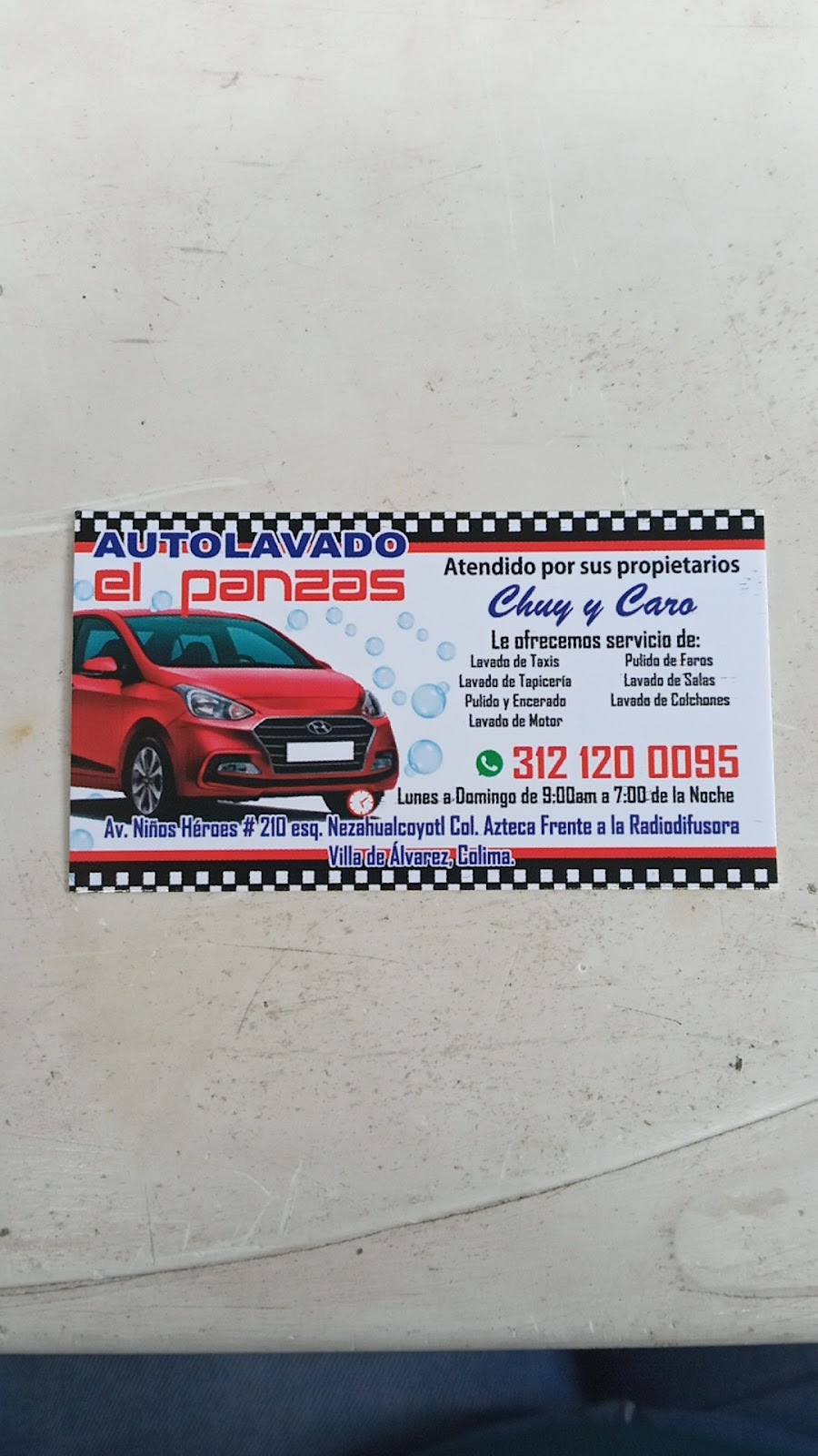 Auto Detallado El Panzas es un servicio profesional de lavado y detallado de autos ubicado en Av. Niños Héroes 202, Azteca, Colima. Con una calificación de 4.3 sobre 5 basada en 14 opiniones, este negocio es reconocido por ofrecer un servicio minucioso y de alta calidad. Los clientes destacan la dedicación y el cuidado que ponen en cada vehículo, aunque algunos mencionan que el proceso puede ser un poco más largo y con precios superiores al promedio. Sin embargo, la mayoría coincide en que el resultado final justifica la inversión gracias a la atención al detalle y el acabado impecable. Auto Detallado El Panzas es ideal para quienes buscan un lavado de autos completo y profesional en Colima. Para más información o para agendar una cita, puede contactarlos al teléfono 312 120 0095 o visitar su sitio web https://directoriocolima.com. Este punto de interés es una excelente opción para mantener su vehículo en óptimas condiciones con un servicio confiable y eficiente.