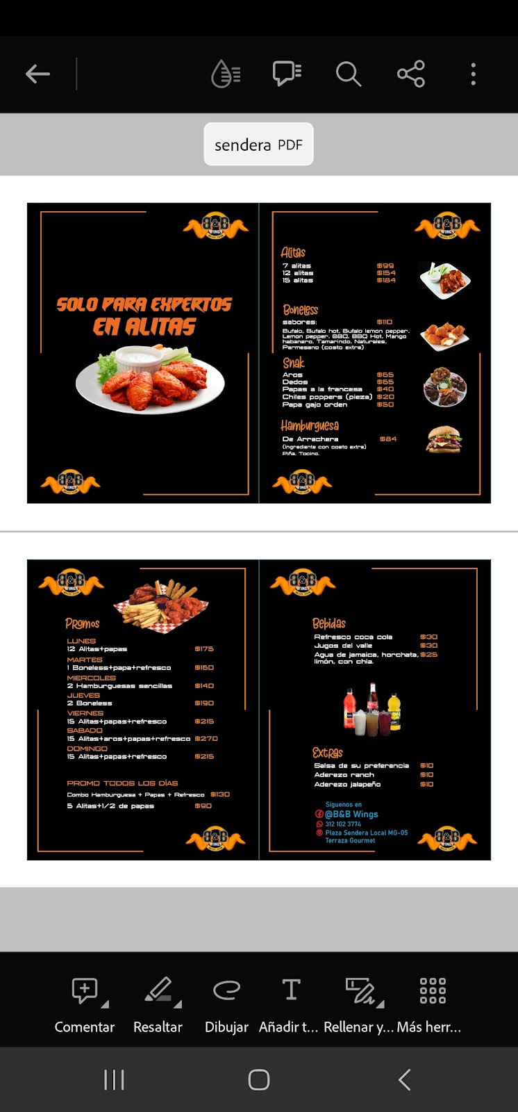 B&B WINGS SENDERA is a well-known restaurant located in Cdad. de Villa de Álvarez, celebrated for serving some of the best chicken wings in Colima. Situated at Miguel de la Madrid Hurtado Plaza SENDERA, upper floor, local MG-05, this food point of interest stands out for its friendly and fast service, ensuring a satisfying experience for every customer. Their menu features a variety of wings, with the boneless parmesan wings highly recommended by regular patrons. Holding a perfect 5-star rating from six reviews, B&B WINGS SENDERA is an excellent choice for those seeking quality food in a welcoming atmosphere. The attentive staff and delicious dishes make each visit memorable. For more information or to place an order, contact them at 312 102 3774 or visit their website https://directoriocolima.com.