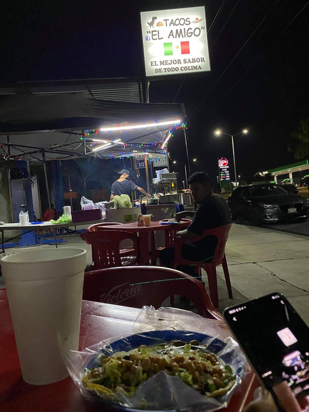 Tacos El Amigo es un restaurante emblemático ubicado en Av Pablo Silva García 130, Villas Providencia, en la ciudad de Villa de Álvarez, Colima. Con una calificación destacada de 4.5 sobre 5 basada en 116 opiniones, este establecimiento se ha ganado la preferencia de locales y visitantes por su excelente calidad y sabor auténtico en cada taco. Su menú ofrece una variedad de tacos preparados con ingredientes frescos y un sazón que se distingue por su autenticidad y sabor tradicional mexicano. Además, el servicio es reconocido por ser amable y eficiente, creando un ambiente acogedor para disfrutar hasta altas horas de la noche. Los clientes destacan no solo la calidad de la comida, sino también los precios accesibles, lo que convierte a Tacos El Amigo en una opción ideal para quienes buscan una experiencia gastronómica auténtica y económica. Para más información o consultas, los interesados pueden visitar su página oficial en Facebook o comunicarse al teléfono 312 107 7655. Tacos El Amigo es sin duda un punto de interés gastronómico en Villa de Álvarez que no debe pasarse por alto.