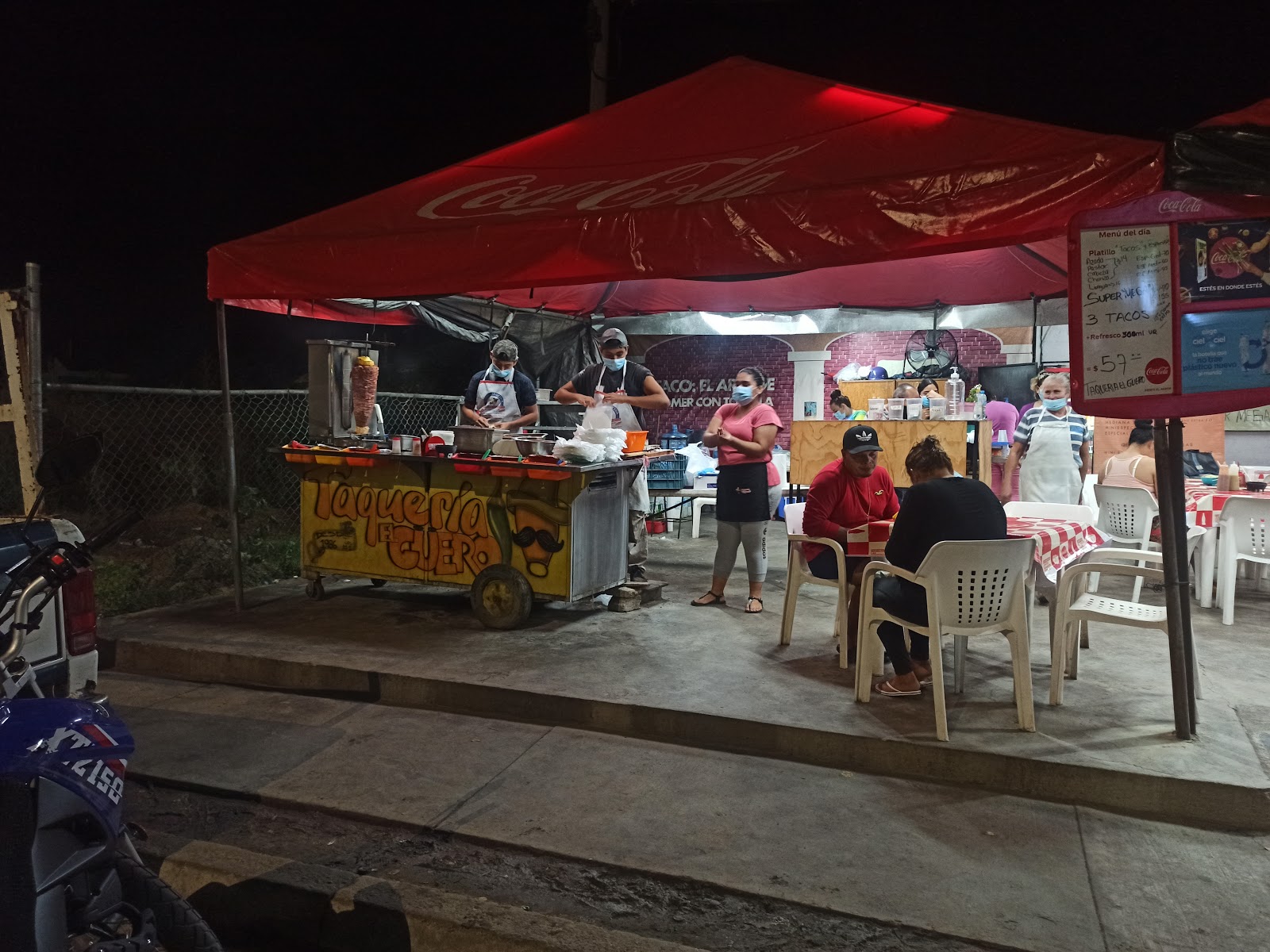 Taqueria El Güero, ubicada en Av. de las Rosas, Jardines de Santiago en Manzanillo, es un punto de referencia para los amantes de la comida tradicional mexicana. Con una calificación de 4.4 sobre 5 basada en 195 opiniones, este restaurante es conocido por sus tacos y quesadillas de calidad. Los clientes destacan la autenticidad y sabor de sus platillos, además de la refrescante horchata que acompaña perfectamente la experiencia gastronómica. Aunque algunos visitantes comentan que los precios pueden ser un poco elevados en comparación con otras taquerías, la calidad y el ambiente hacen que valga la pena la visita. Sin embargo, es importante mencionar que algunos clientes han señalado detalles en el manejo de los utensilios, lo que refleja un área de mejora en términos de higiene y seguridad. Taqueria El Güero es ideal para quienes buscan disfrutar de una comida tradicional en un ambiente familiar y acogedor en Manzanillo.